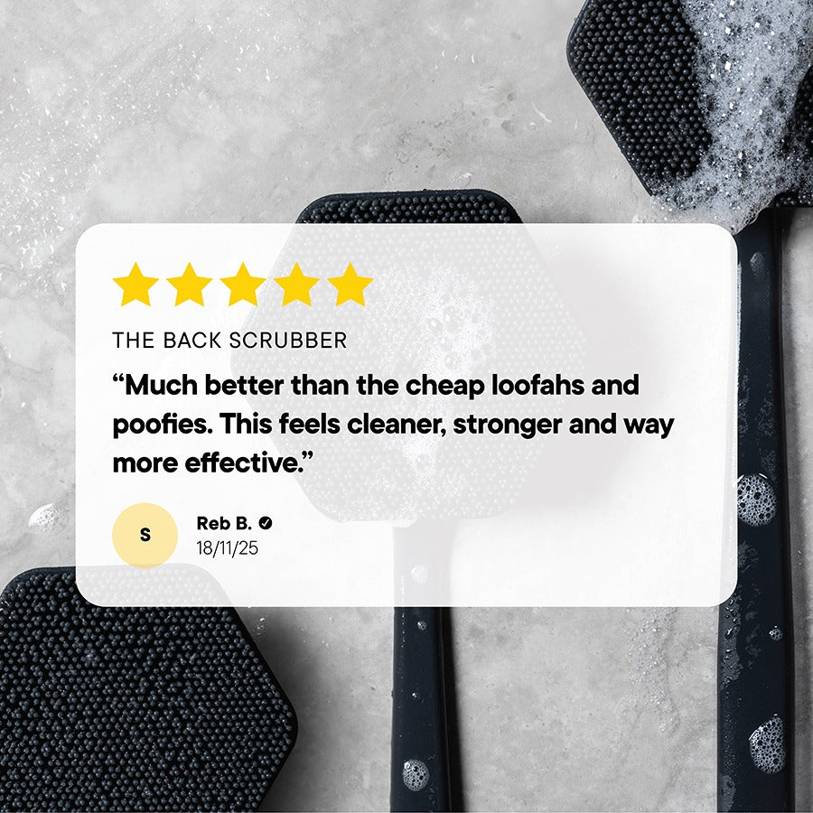 The Back Scrubber’s extra-long ergonomic handle makes it easy to exfoliate hard-to-reach spots, while its 100% silicone head stays clean, dry, and bacteria-free. It unclogs pores, boosts circulation, and leaves your skin feeling fresh, smooth, and seriously rejuvenated. Built tough. Designed smart. Your back’s finally in good hands.
