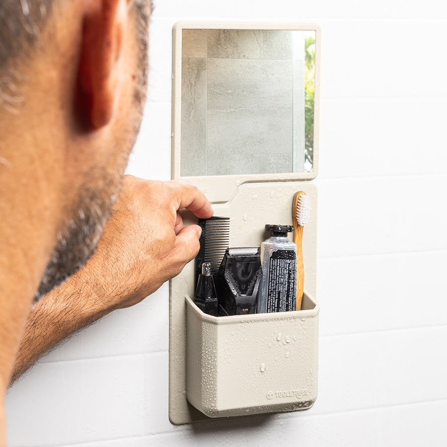 The James & Oliver Set brings order and clarity to your shower. The James offers roomy, well-drained storage for all your essentials while The Oliver delivers a clear, shatterproof mirror for all your grooming needs. Together, they stick to any smooth surface with powerful silicone grip. It is the perfect duo for shaving, brushing, or finally finding your face in the steam.